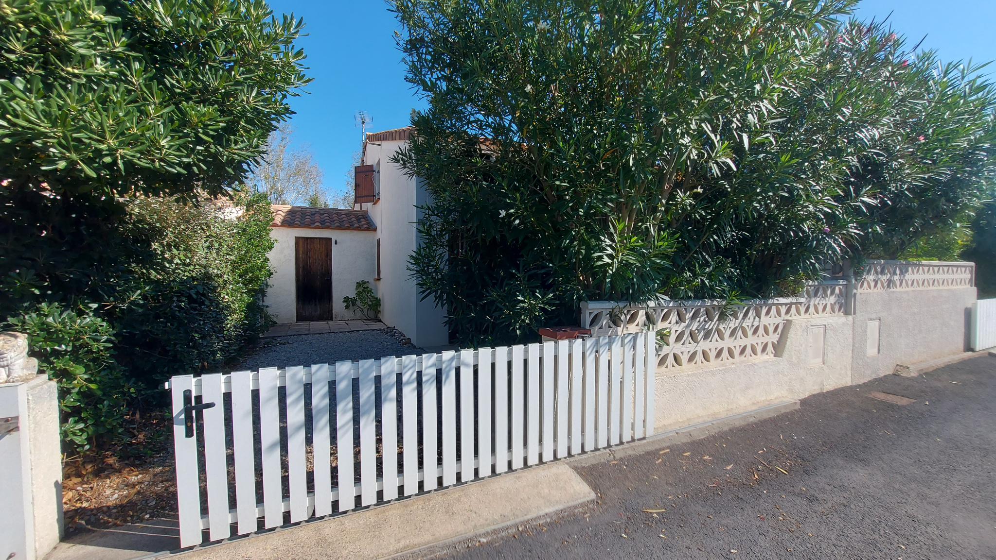 A Sainte Marie Plage dans résidence avec pisicne, villa avec charme et confort comprenant séjour, coin cuisine, salle d'eauavec wc, une chambre et grande mezzanine. L'extérieur offre une belle terrasse bien exposée, cabanon et possibilité de rentrer son véhicule.