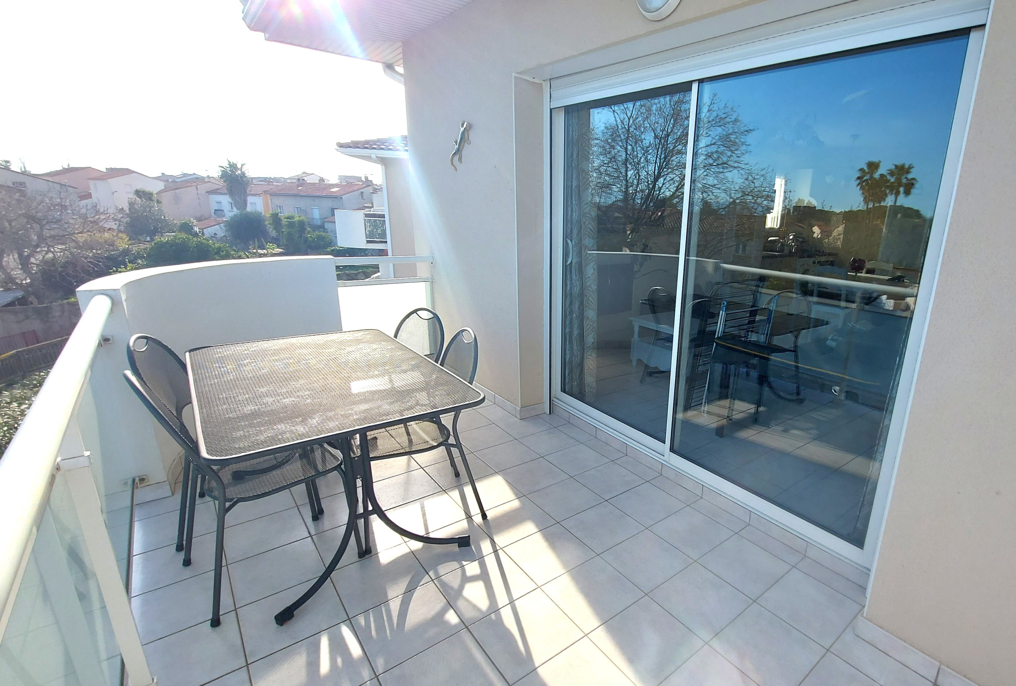A Sainte Marie, entre plage et village, dans petite copropriété de 12 lots, appartement avec garage en excellent état comprenant séjour, cuisine équipée, une chambre, salle d'eau avec wc, belle terrasse. Un vrai bijou ! Tout le confort nécessaire ! Un garage et un local à vélo !