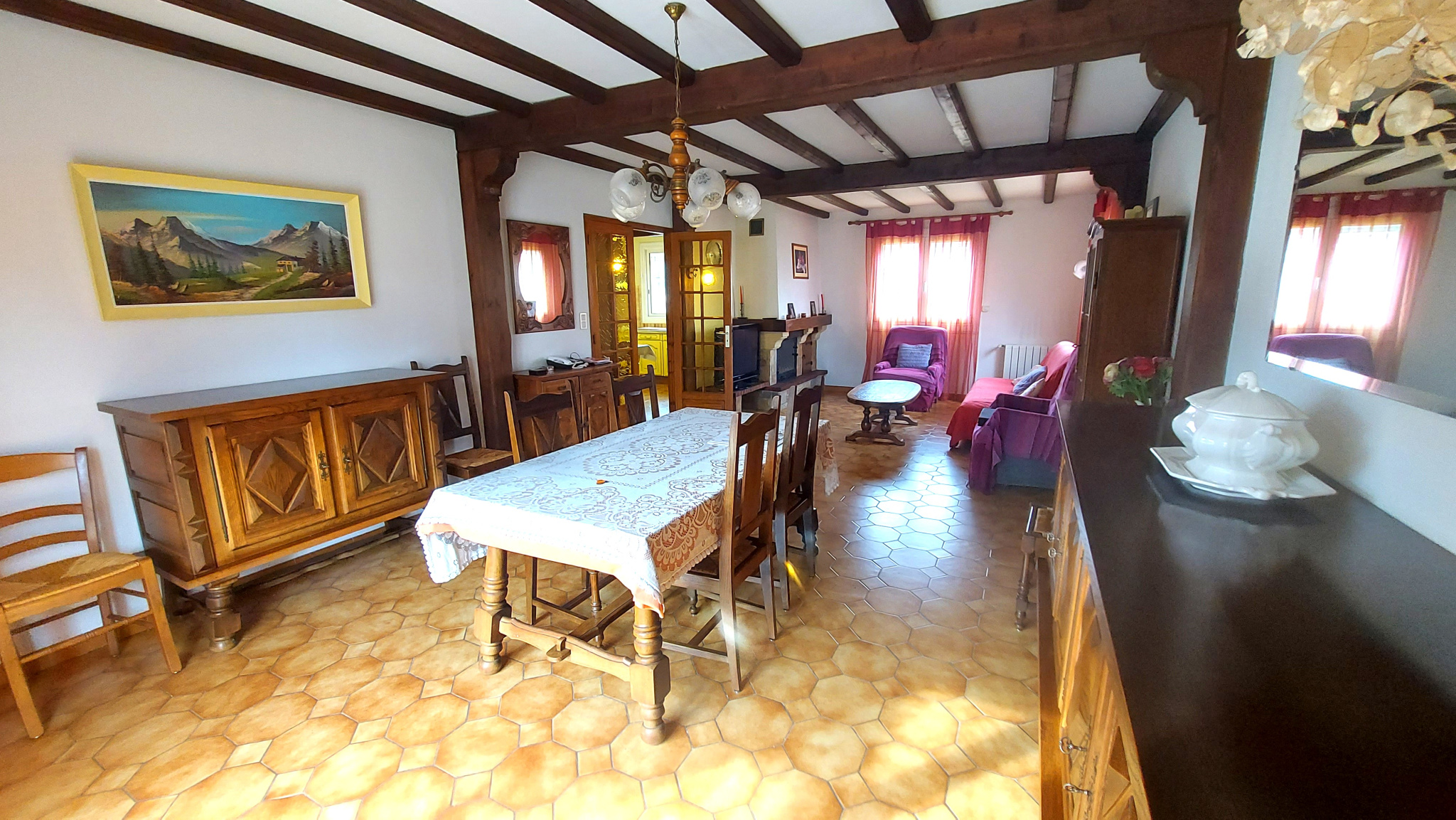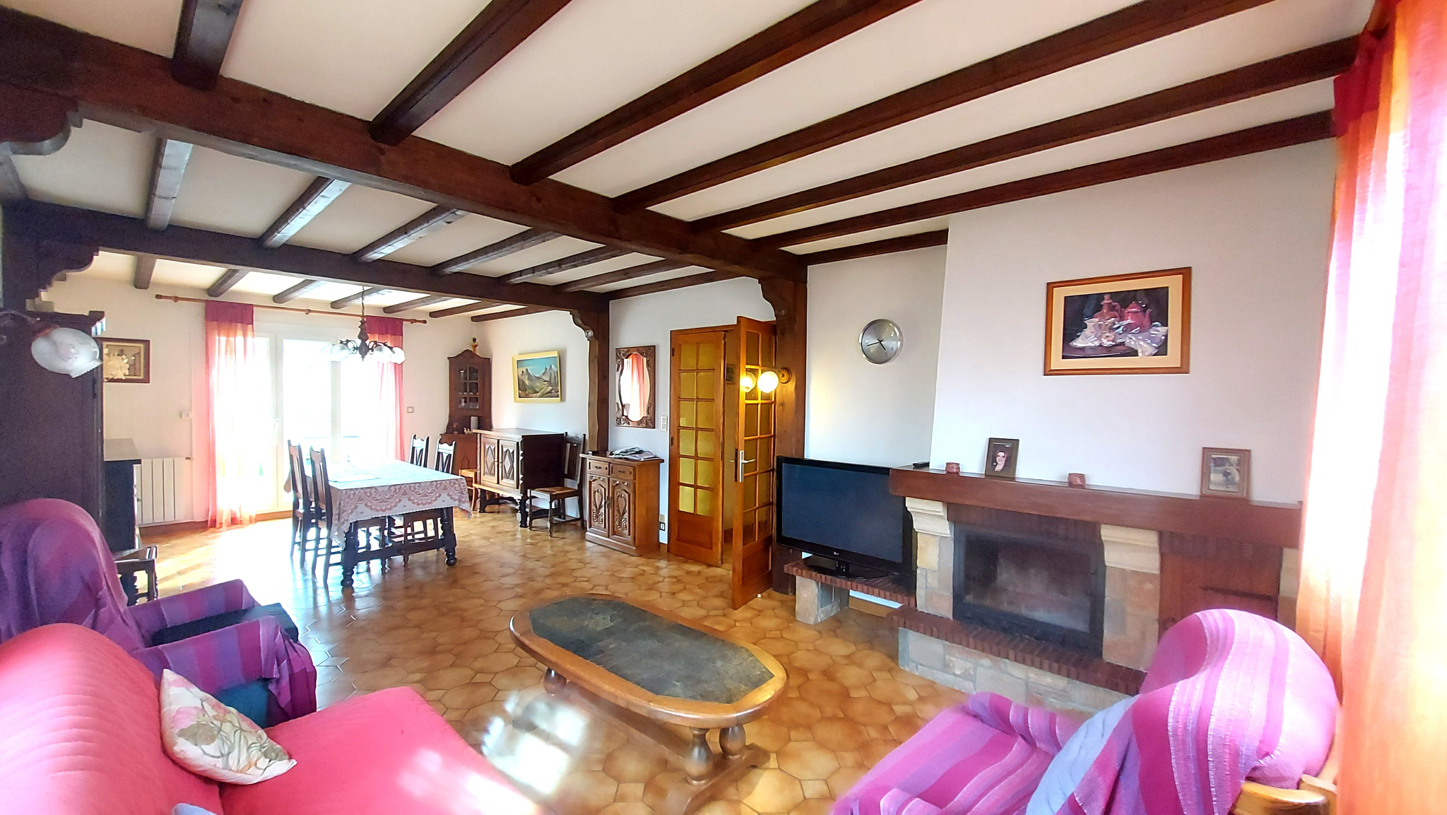 A Sainte Marie village, dans quartier calme à proximité des commerces, maison individuelle en construction traditionnelle de 2003 édifiée sur une parcelle de 450 m² comprenant séjour, cuisine séparée, deux grandes chambres,salle de bain, wc, garage et à l'étage deux chambres, wc avec point d'eau. Belle parcelle arborée et piscinable. Maison à rafraîchir.
